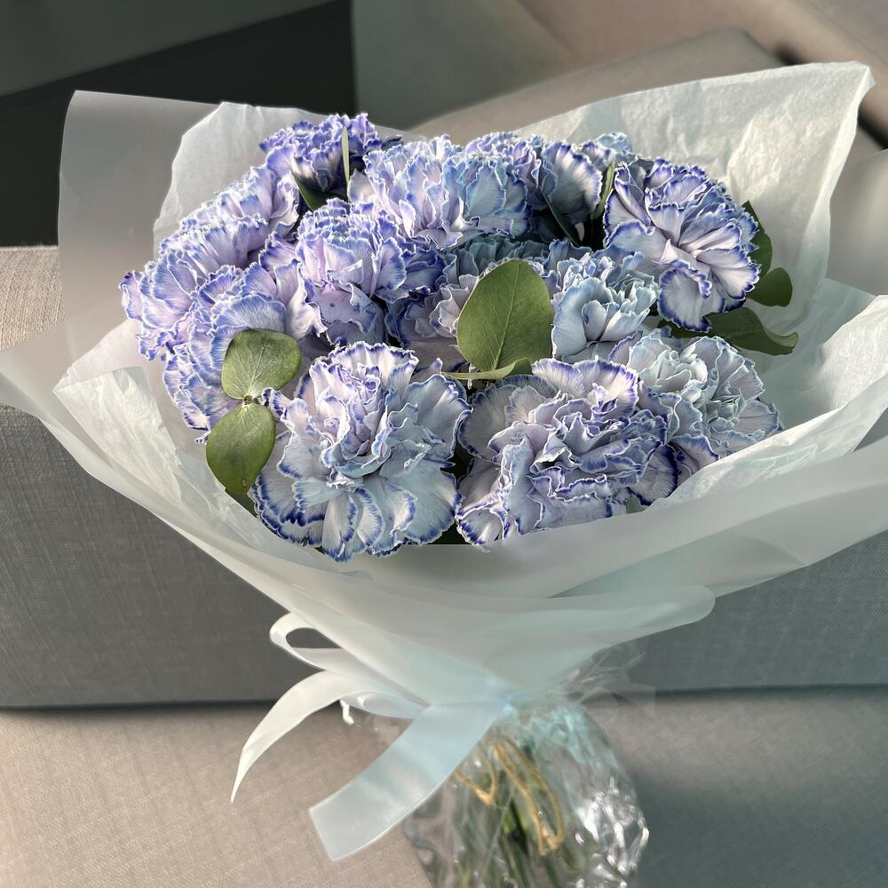15 лавандовых гвоздик с эвкалиптом (букет N 24)