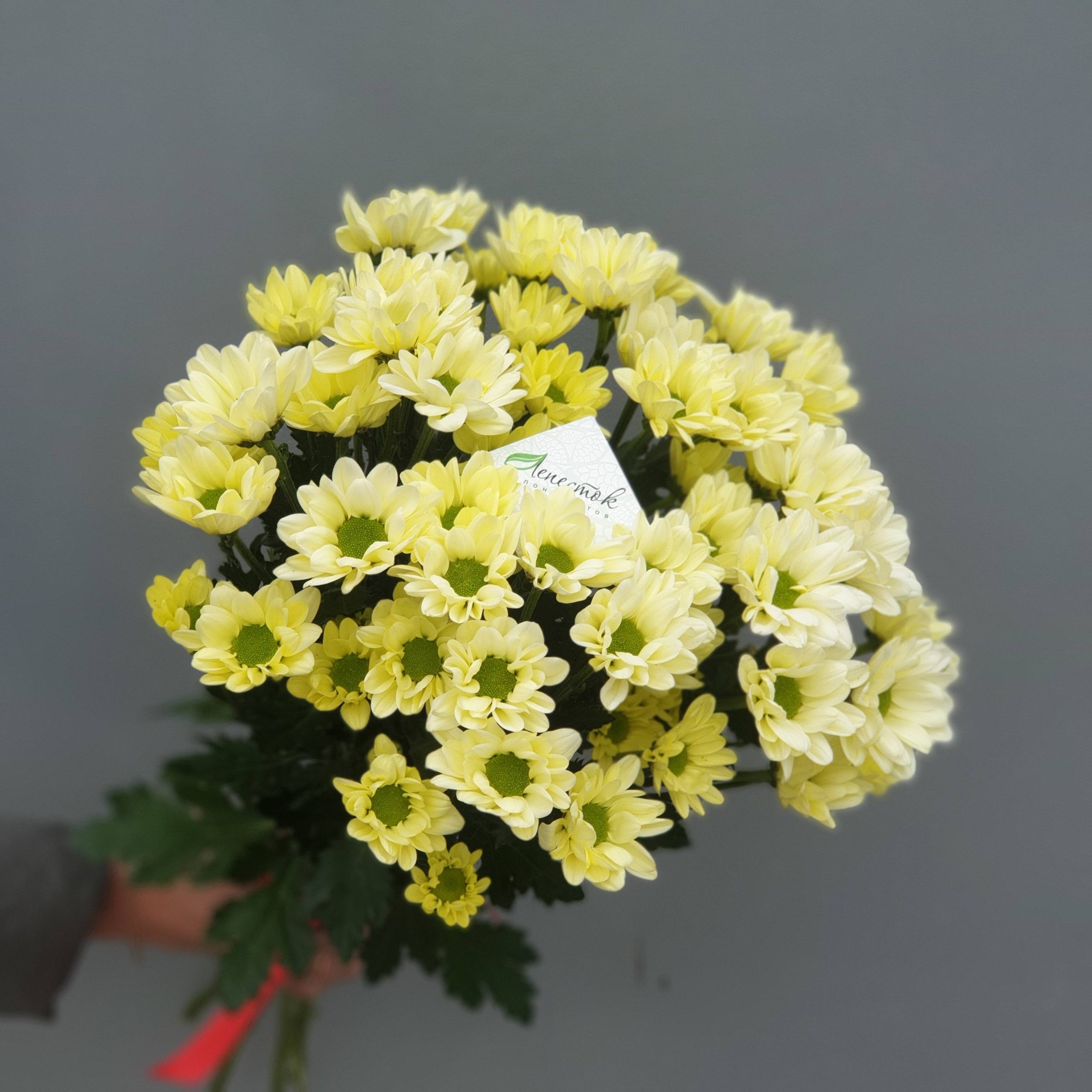 15 кустовых хризантем с зеленью