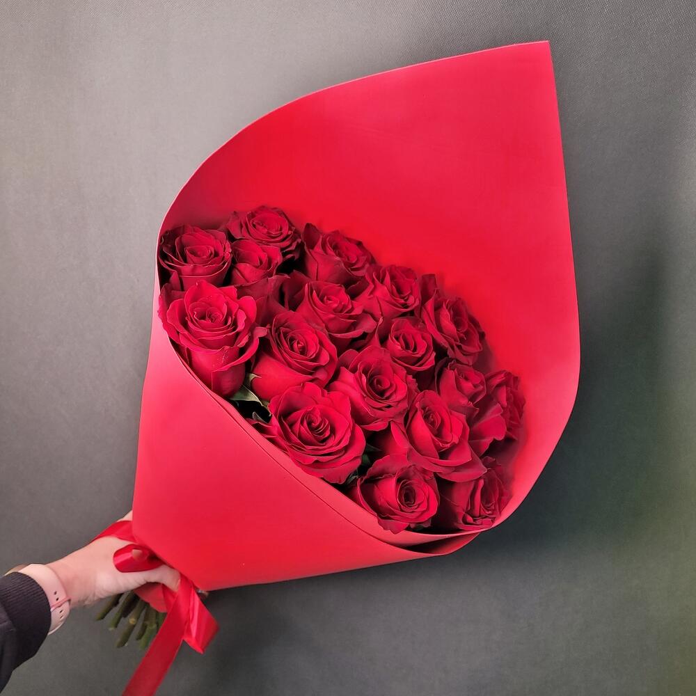 Роза Эквадор – 17 шт.Упаковка фоамиран – 1 шт.Лента атласная – 1 шт.