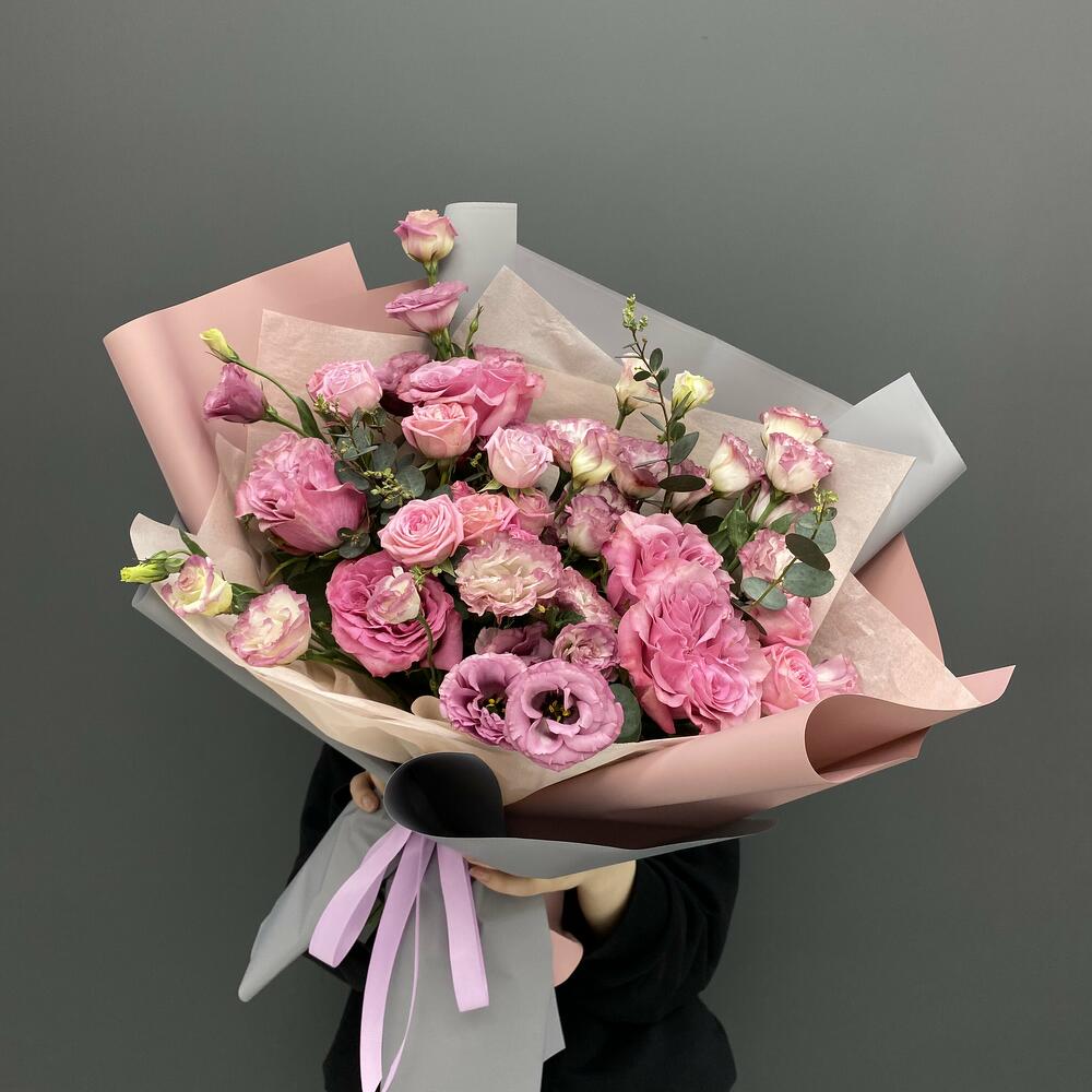 Гвоздики, Лизиантусы, Розы, Тюльпаны
