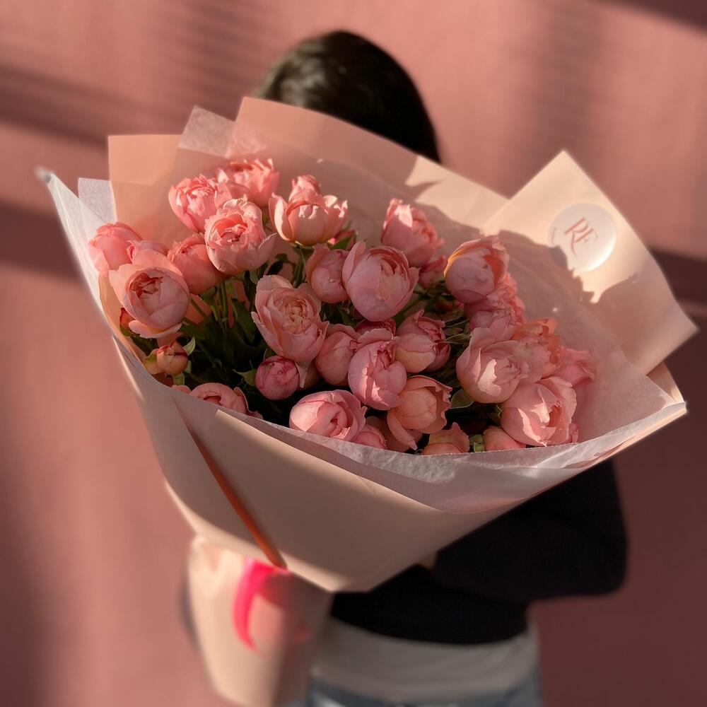 Альстромерии, Кустовые розы, Лизиантусы, Пионовидные розы, Розы, Ромашки