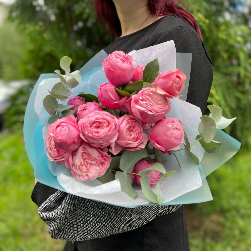 Альстромерии, Кустовые розы, Лизиантусы, Пионовидные розы, Розы, Ромашки