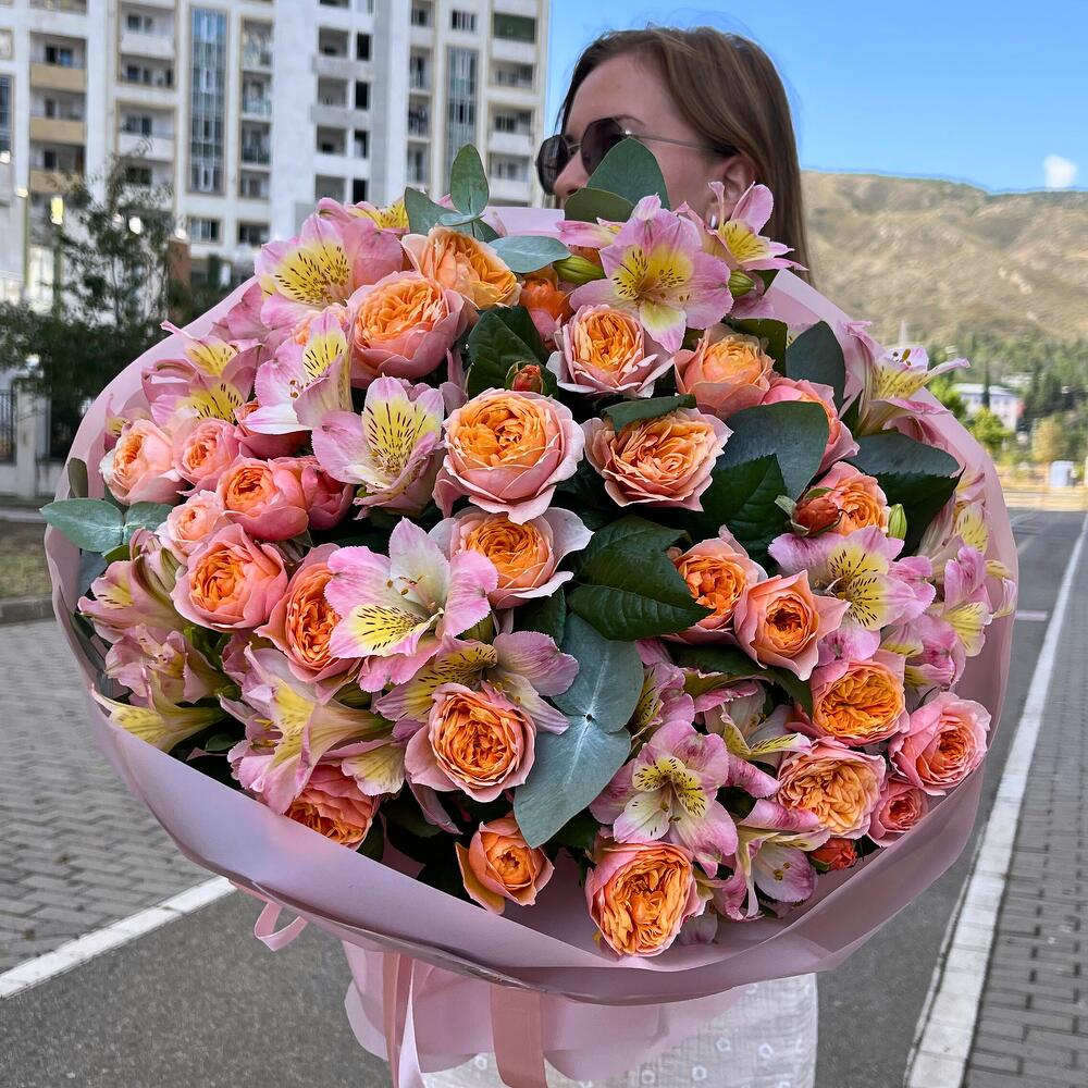 Насыщенный красками и живой эмоцией, наш микс букет из роз и альстромерии – это настоящий калейдоскоп красоты. Этот удивительный букет сочетает в себе изысканность роз и жизнерадостность альстромерий, создавая удивительную гармонию и яркое впечатление.