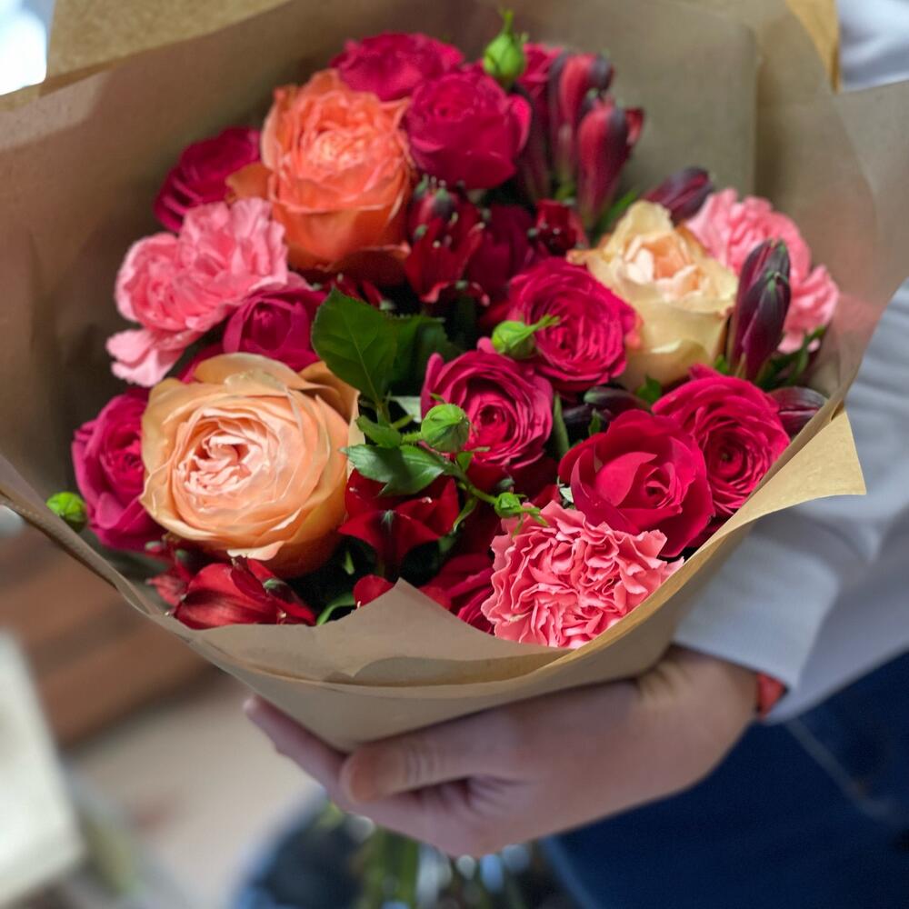 По ситуации , сорта цветов могут быть иными, чем на фото, но стилистика букета будет сохранена.