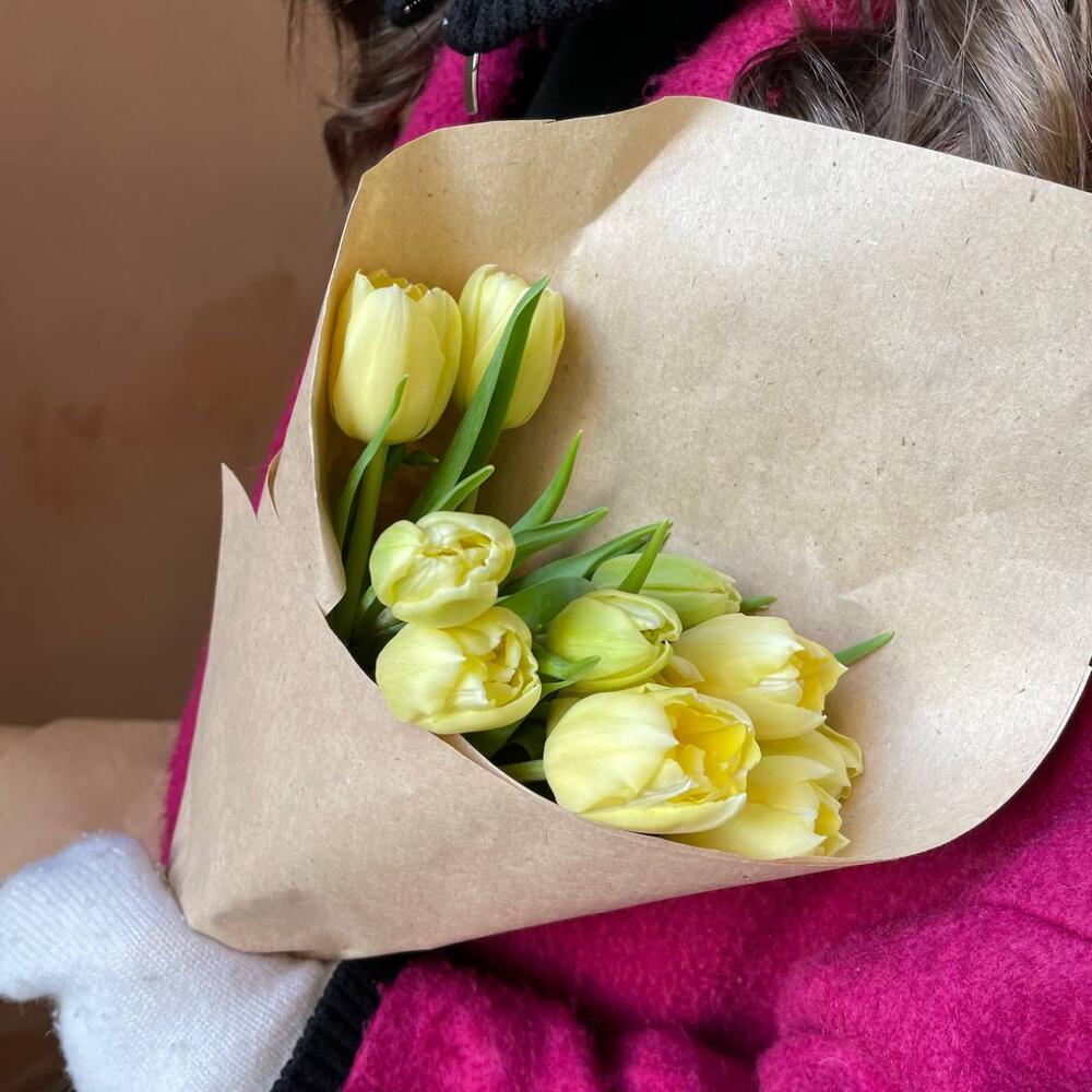 Крафтовая упаковка – 1 шт.лимонный пионовидный тюльпан – 11 шт.
